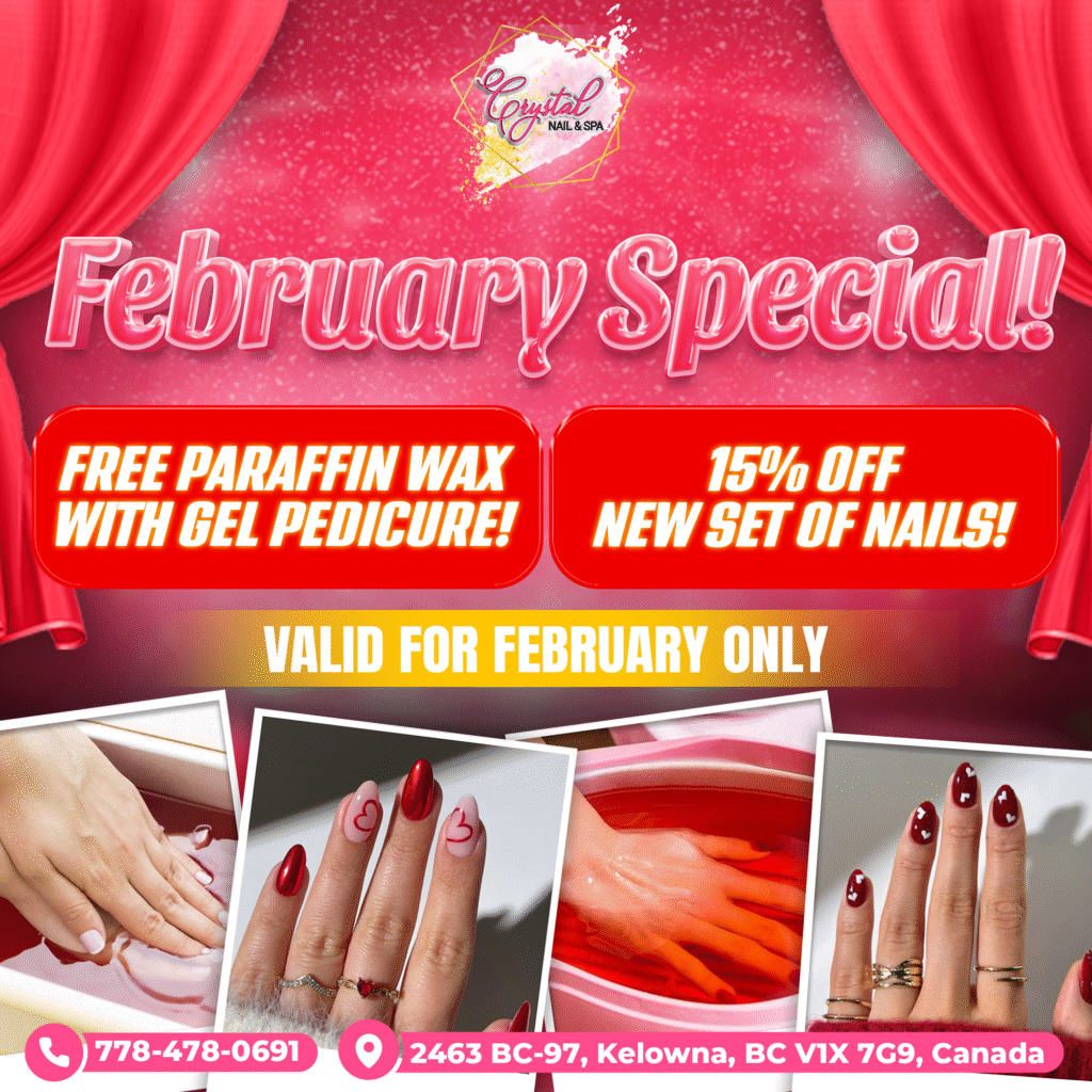 Conveniently located at 2463 BC-97, Kelowna, BC V1X 4J2, Canada, Crystal Nails & Spa is a premier destination for exceptional nail and spa services. We focus on enhancing your natural beauty and providing daily rejuvenation with a variety of outstanding treatments.